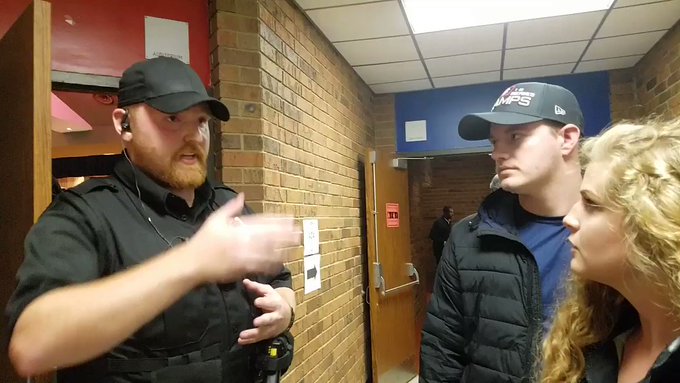During the video, the security guard refuses to answer her questions as to whether she has violated any rules and repeatedly asks her to leave, implying that the event was a private one.